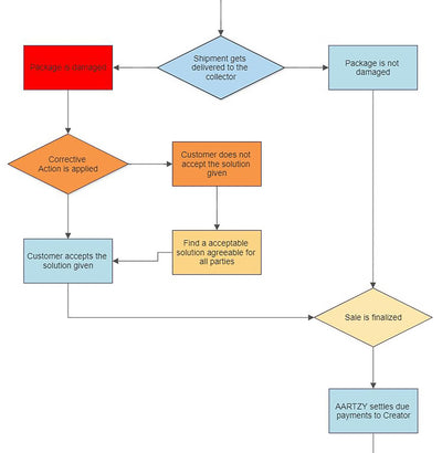 Creators must package securely (frame, tissue paper, bubble wrap, foam, wooden crate).